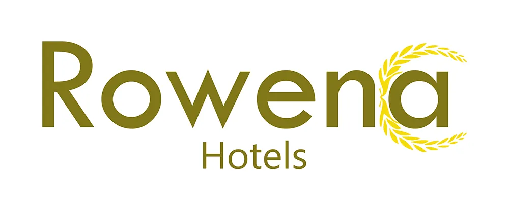 Image: Laurel wreaths mean joy, winning is integrated into the logo, forming Rowena Hotels brand.