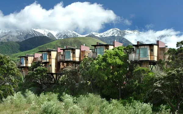 1. Nép mình giữa dãy núi Kaikoura và Thái Bình Dương, Khu nhà nghỉ & Nhà cây Hapuku ở New Zealand luôn khiến nhiều người choáng ngợp vì vẻ đẹp của khung cảnh thiên nhiên trù phú bao quanh.