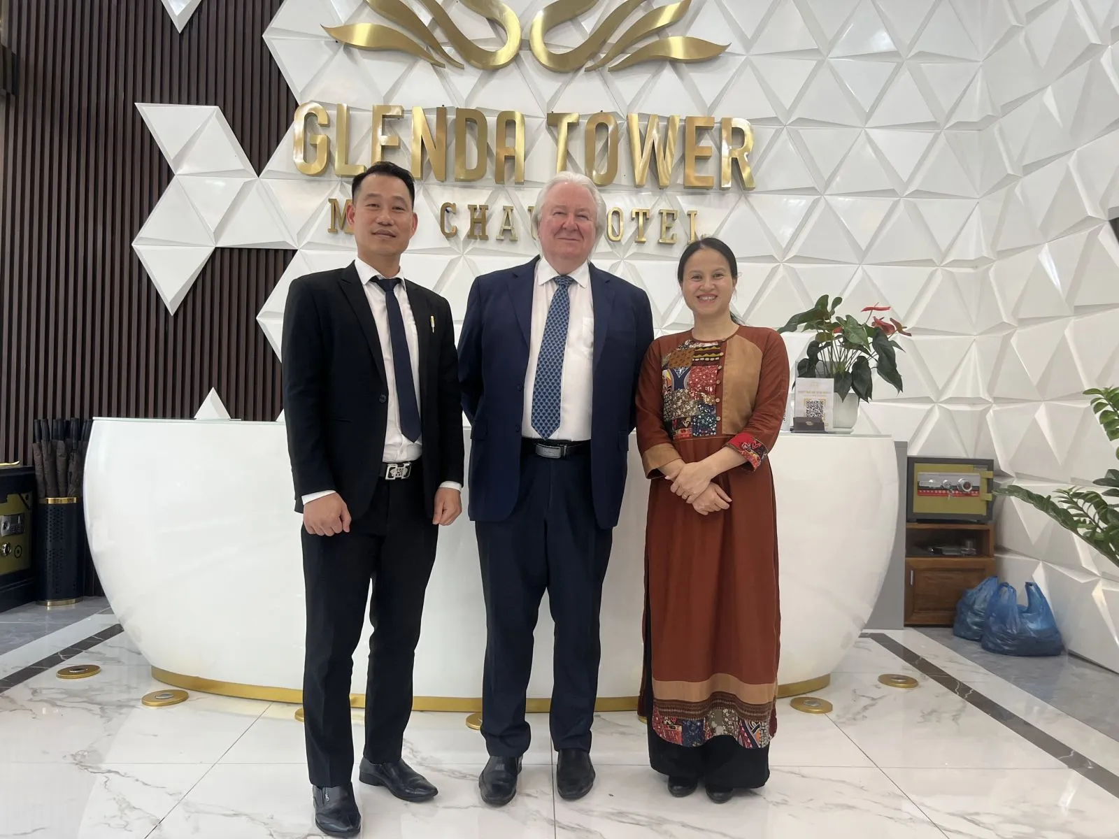 On May 26, 2023, during a business trip to Moc Chau to attend the Opening of the Cultural Festival "World's Leading Regional Natural Destination" in 2023, Mr. Graham Cooke - President of World Travel Awards, chose Glenda Tower Hotel Moc Chau, managed by Viet Orient Hospitality (VOH), to stay for 2 nights. To celebrate this important occasion, Mr. Geoffrey Nguyen - CEO of VOH, Ms. Trang Thi Xuan - Permanent Vice Chairman of Son La Provincial People's Committee and Ms. Hoang Ngan Hoang - Director of the Department of Culture, Sports and Tourism of Son La Province welcomed Mr Cooke at Glenda Tower Hotel Moc Chau.