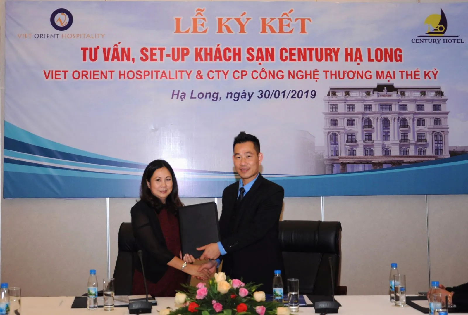 According to the cooperation agreement, Viet Orient Hospitality officially became Consultant, Setting-up partner for Century Hotel Halong. At the event, the two companies signed a cooperation agreement contract relating Technical Consultancy Services in hotel building, utilities functional development, set-up and training, hotel management service consulting after pre-opening period so that the hotel will be recommended and appreciated by its services and professionalism offering to the customers..