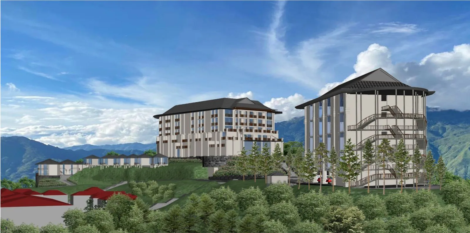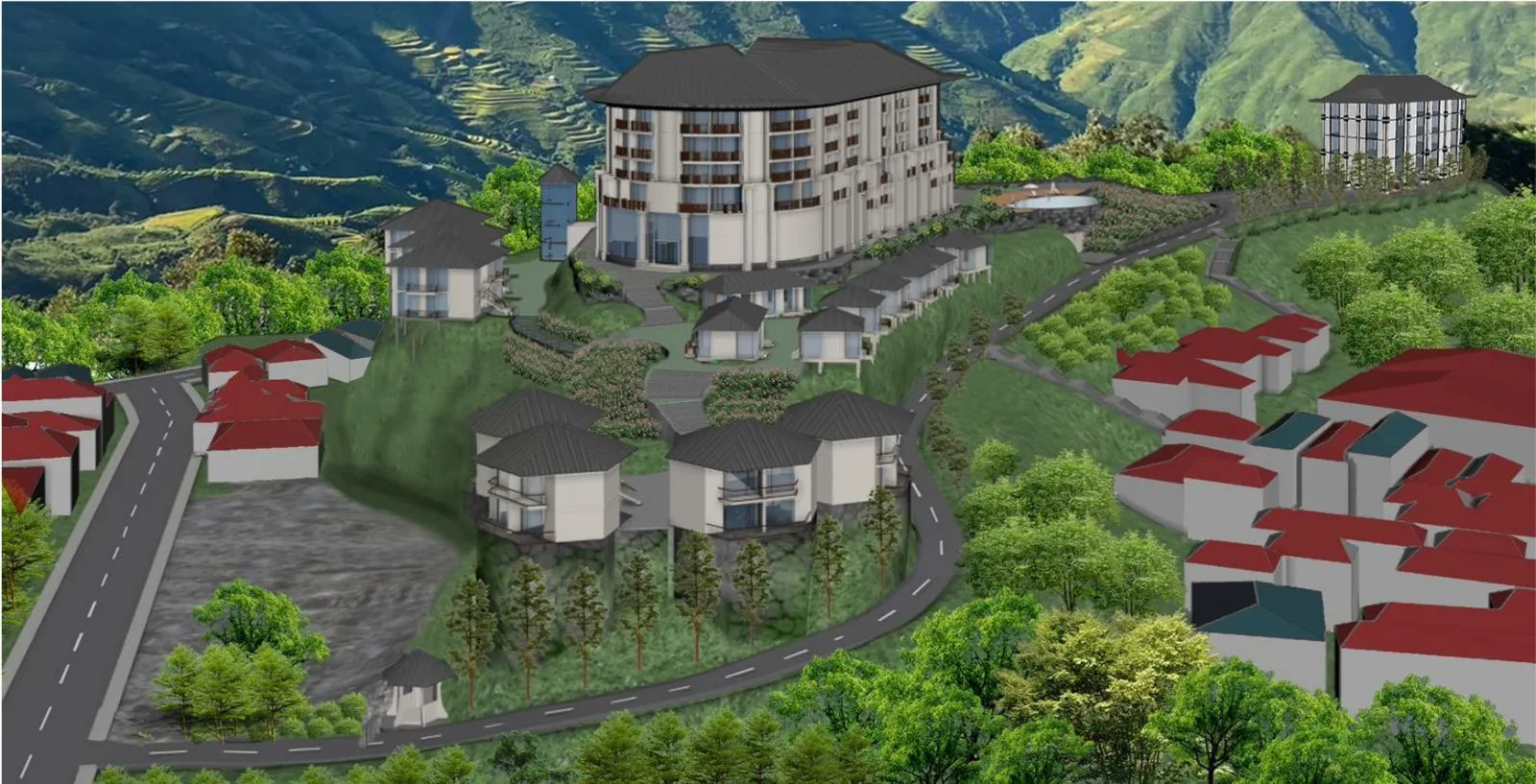 The project covers a total area of 2 hectares, situated on a hilltop with panoramic views.