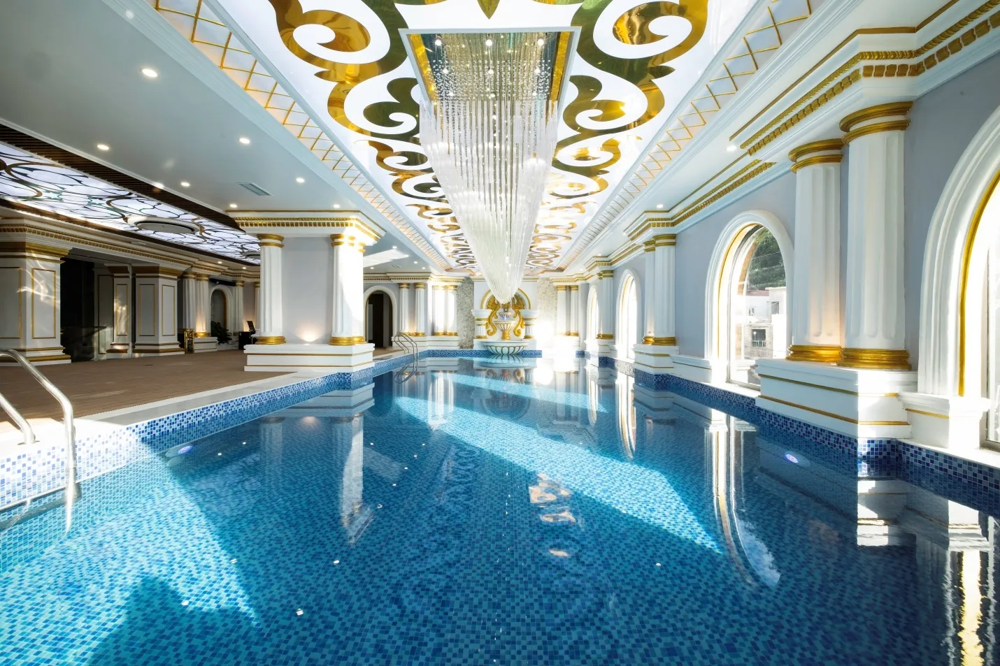Bể bơi bốn mùa Mường Lèo được thiết kế theo phong cách cổ điển như trong một tòa lâu đài tráng lệ