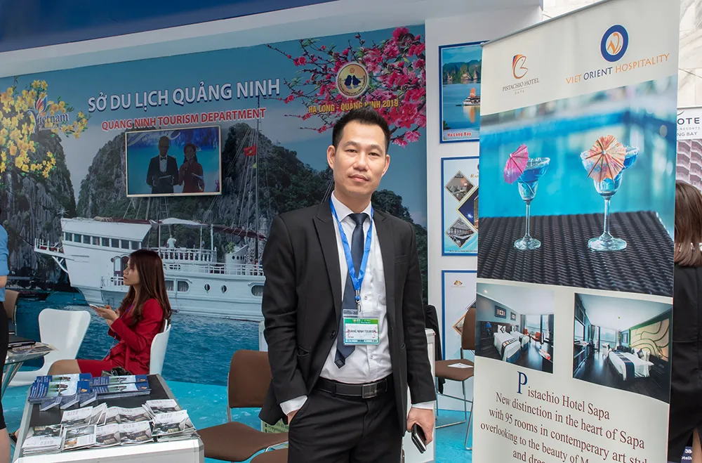 CEO of Viet Orient Hotel Setup & Management Consulting Company during the presentation of Pistachio Hotel Sapa at the trade fair.