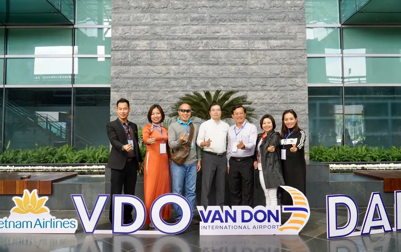 Delegates of the Quang Ninh MICE tourism survey team at Van Don International Airport.
